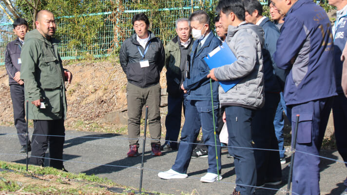 イノPの本拠地である熊本県 戸馳島のイノシシ対策フィールドにて、鳥獣被害対策現場の視察の受け入れを行なっています。