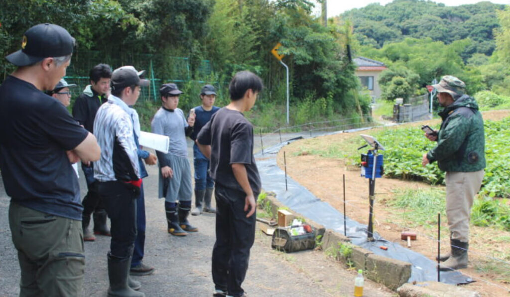 鳥獣対策の担い手を全国で育成し、自分たちの地域や畑を守れるよう、熊本県戸馳島のイノシシ対策フィールドにて視察の受け入れや、各地での研修・講演活動を行っています。